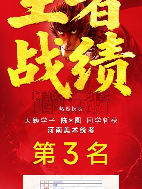 陈*圆同学斩获2026河南美术统考第3名