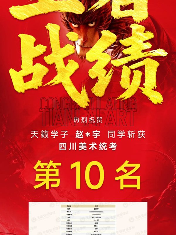 赵*宇同学斩获2026四川美术统考第10名