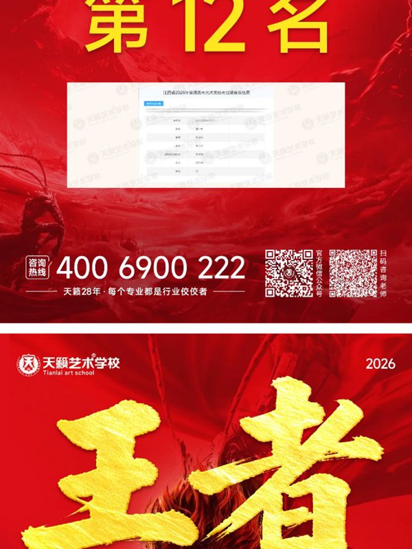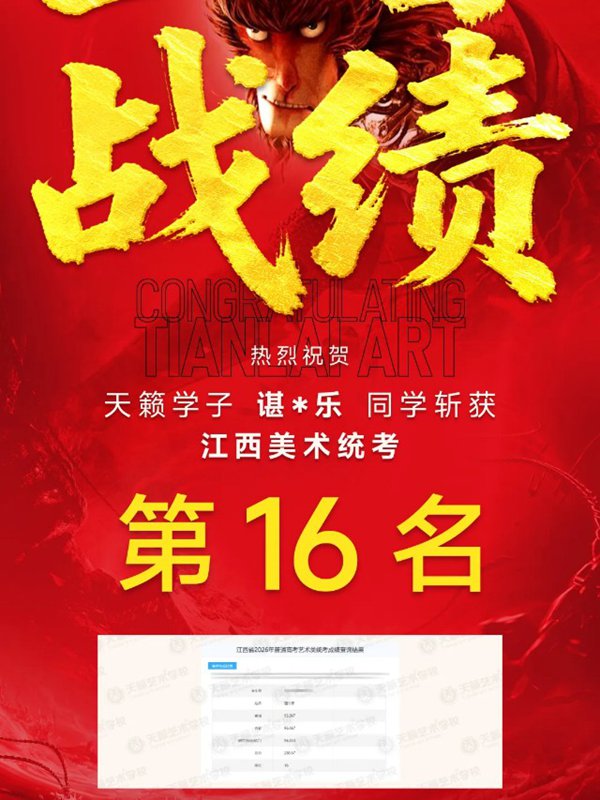 谌*乐同学斩获2026江西美术统考第16名
