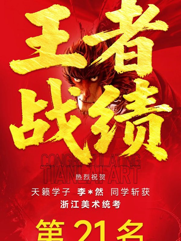 李*然同学斩获2026浙江美术统考第21名