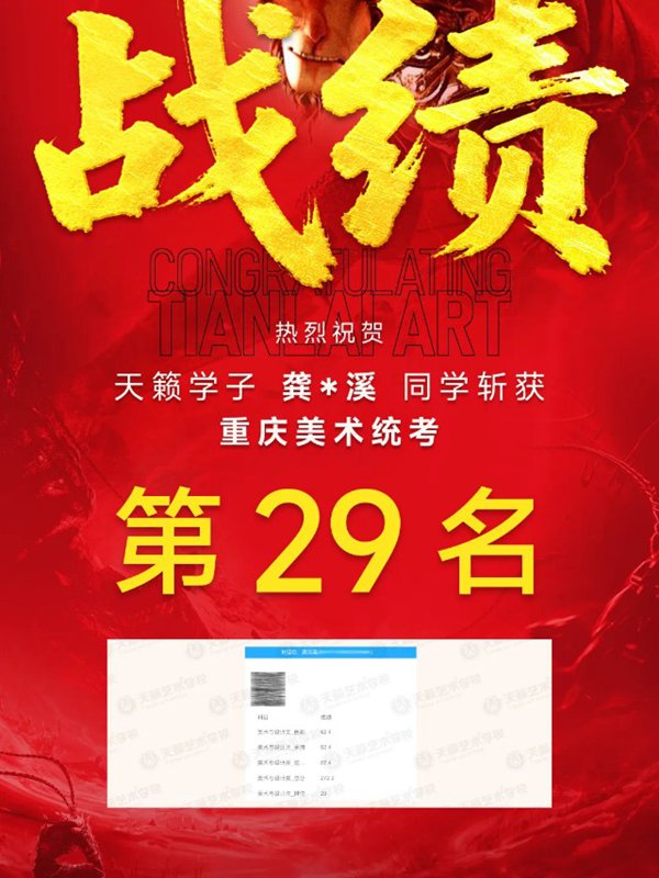 龚*溪同学斩获2026重庆美术统考第29名