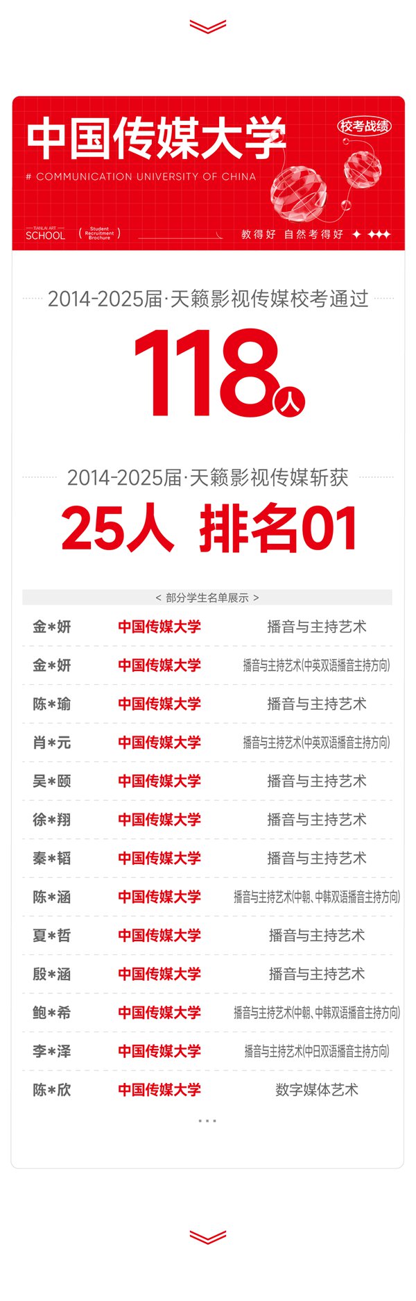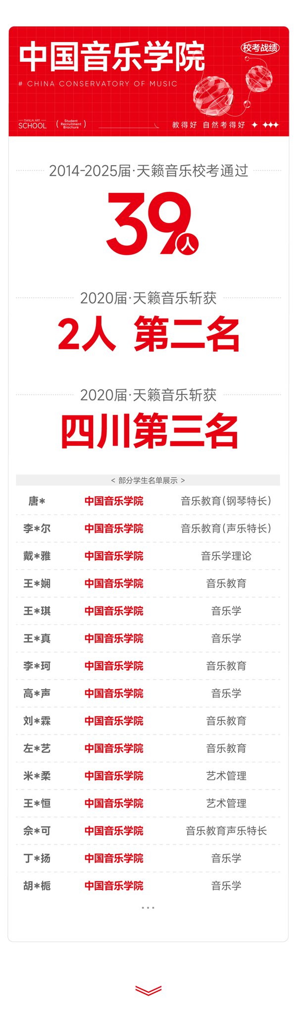 - 八中树人中学遵义艺术中学郑州华尔中学洛阳格致中学天籁艺术学校(高中部)重庆巴南育才实验中学重庆风景园林学校项城市尚文天籁艺术高中